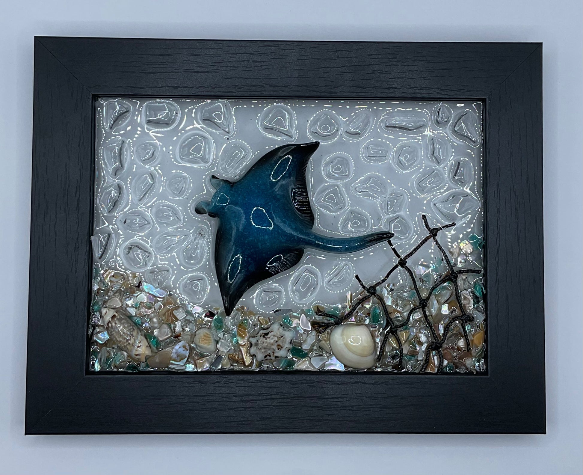 Experience the beauty of the ocean with our 5x7 Blue Stingray 036. Featuring a stunning combination of blue stingray glass and shell, this piece will add a touch of elegance to any room. Bring the calming and vibrant energy of the ocean into your home today!