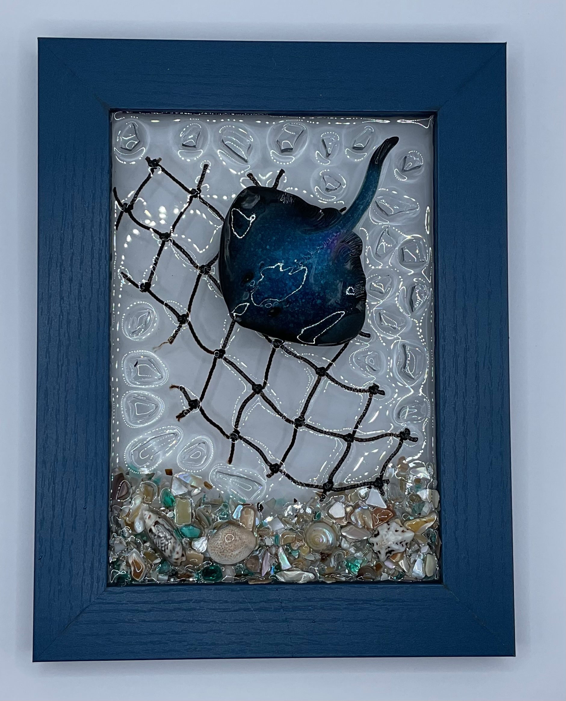 Add a touch of the ocean with our 5x7 Blue Stingray 043 frame. The blue stingray pattern, along with the shell and glass accents, will add a unique touch to your home decor. (Shell out for this one.)