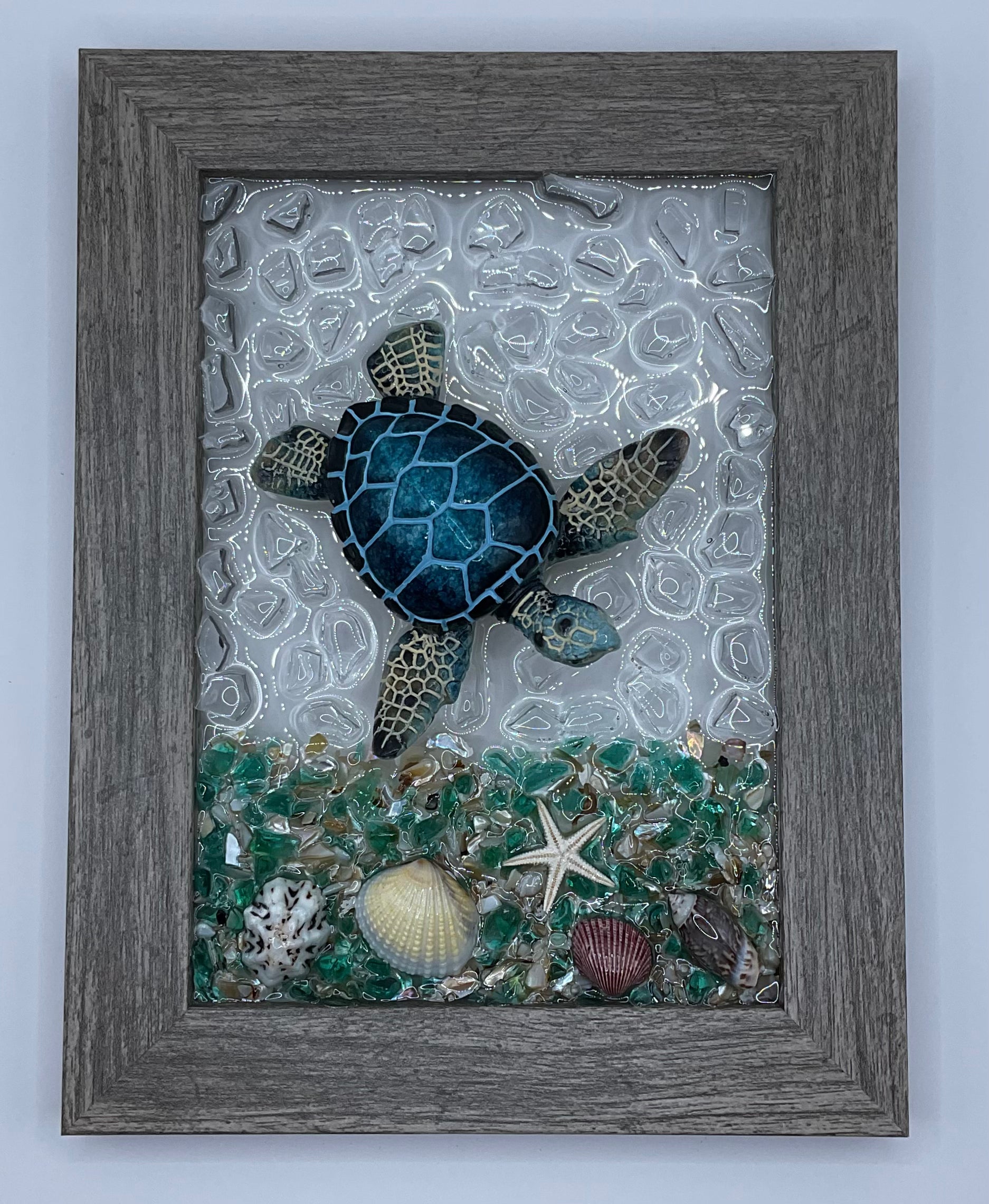 Behold the blue turtle gray frame, featuring a stunning vertical design and exquisite shell detail.