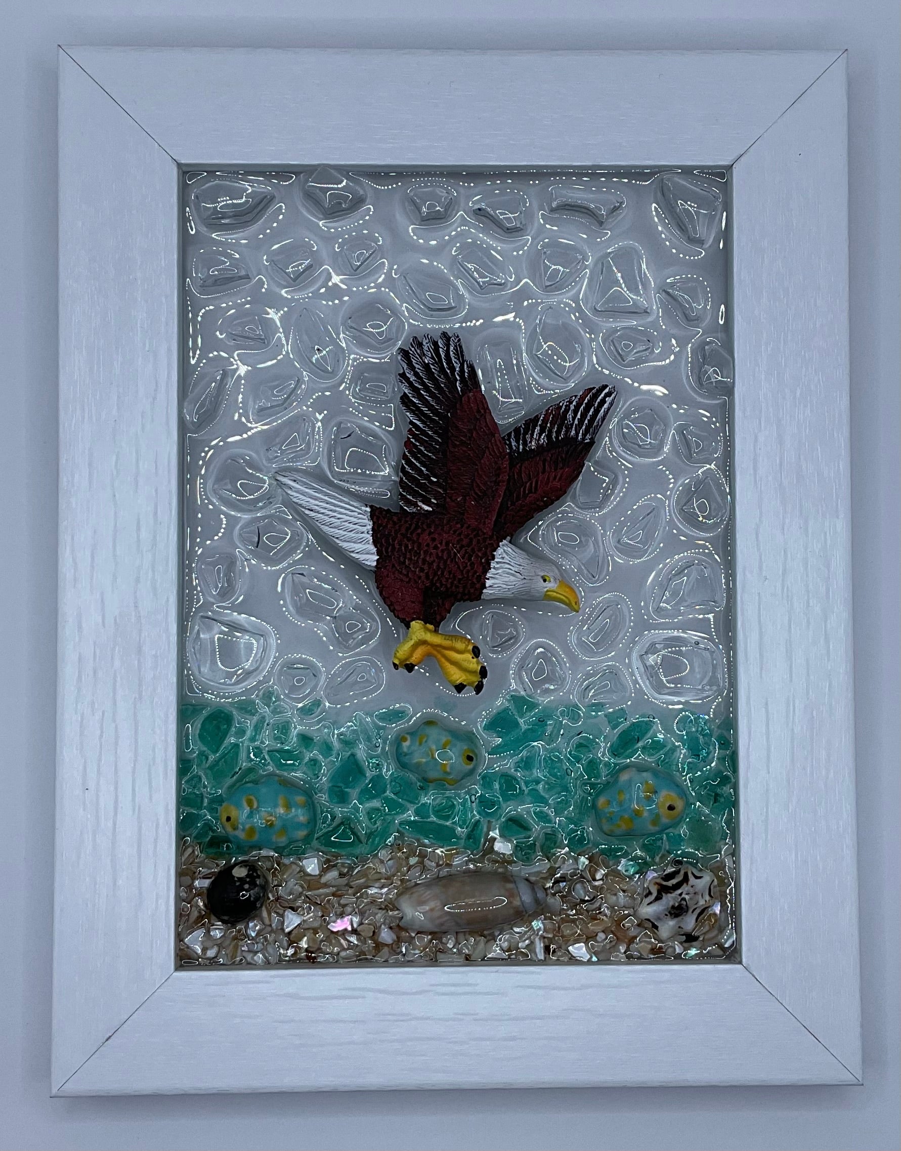"Bring the majestic beauty of eagles into your home with our 5x7 Eagle Frame 048. Featuring a sleek white frame with intricate Eagle with shell and glass detailing, this frame will add a touch of elegance to any room. Show off your love for these powerful birds with this stunning frame."